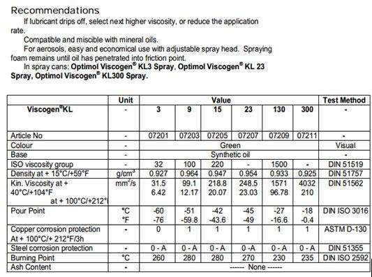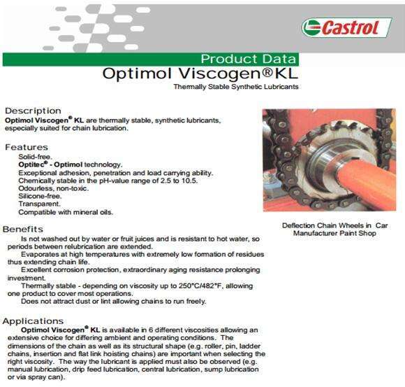 viscogen KL是合成鏈條潤滑油,特別適用于鏈條潤滑。