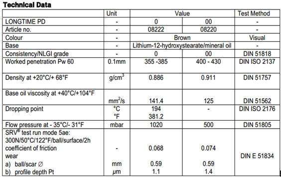 Longtime PD 0 + PD 00是高性能潤滑脂齒輪長期潤滑