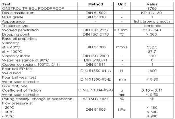 嘉實多TRIBOL FOODPROOF 8765提供了良好的附著力和良好的水穩(wěn)定性由于