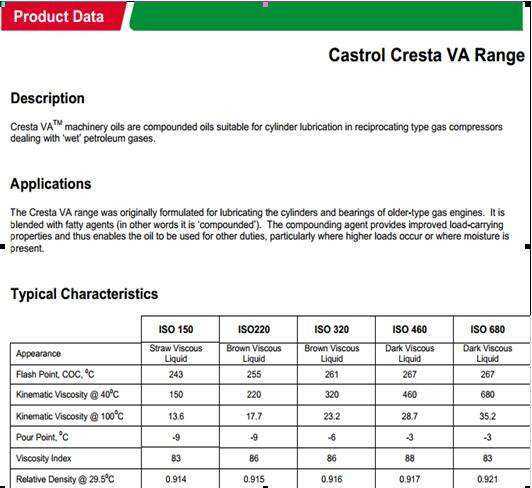 嘉實多CASTROL CRESTA VA150、VA220、VA320、VA460、VA680詳細說明?。g覽3057次)