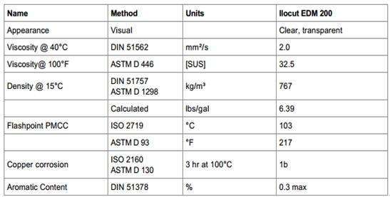低粘度,保證良好的散熱和窄的火花間隙沖洗作用