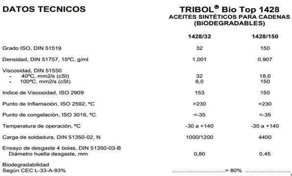 嘉實多Tribol BioTop 1428是基于合成酯油。 根據CEC L-33-93和測試的油
