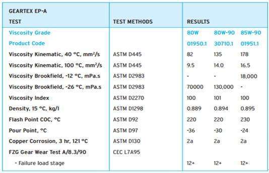 Geartex EP-A是在SAE 80W,80W-90,85W-90粘度等級。