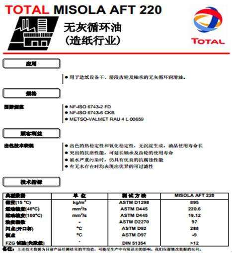 道達(dá)爾AFT220無灰循環(huán)油(造紙行業(yè))