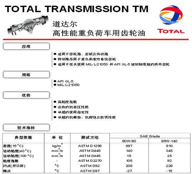 道達爾高性能重負荷車用齒輪油