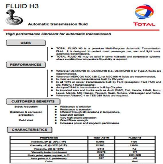 道達爾TOTAL FLUID H 3自動傳動液詳細說明 (瀏覽2376次)