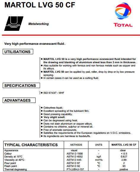道達爾MARTOL LVG 50 CF揮發性沖壓油