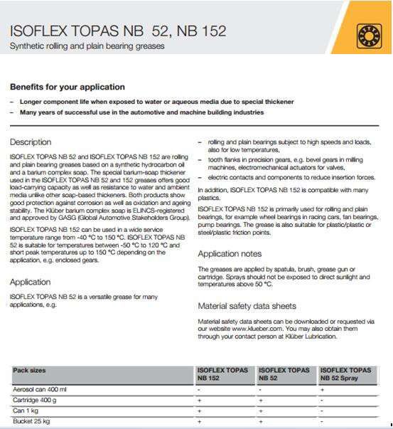 克魯勃ISOFLEX TOPAS NB 52、NB 152詳細說明 (瀏覽2681次)