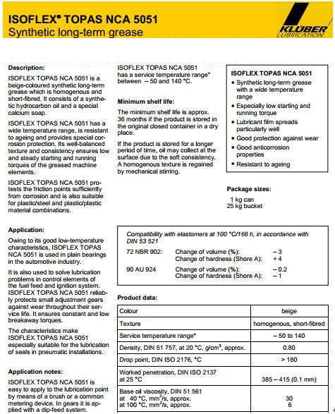 ISOFLEX TOPAS NCA 是一種特殊合成低溫和長期的潤滑脂。它由一個合成烴油和一種特殊鈣皂。 這種特殊的油脂組成的合成功率OIL和一個特殊的鈣皂。