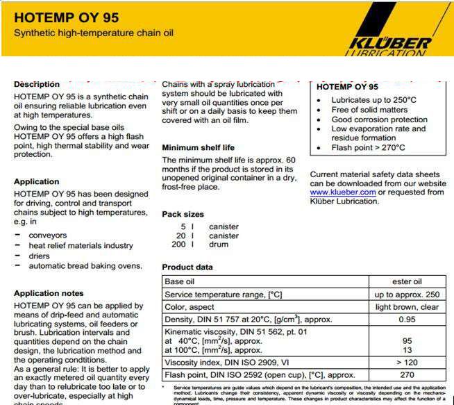 合成高溫鏈條油,即使在高的溫度下可靠地潤滑。 通過選擇特定的基礎油HOTEMP OY 95高閃點達到。 在同一時間繪制HOTEMP OY 95是一個良好的熱性能和耐磨損保護。hotemp 95合金是一種合成的鏈