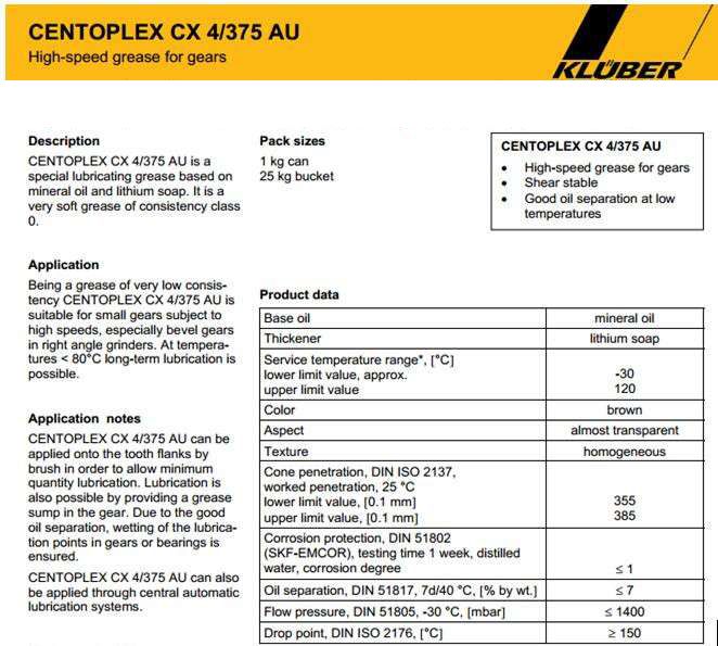 CENTOPLEX CX4/375 AU是與特選的礦物油的鋰基潤滑脂。 CENTOPLEX CX 4/375 AU 0具有一致性類,使其成為一種非常柔軟的調整油脂。