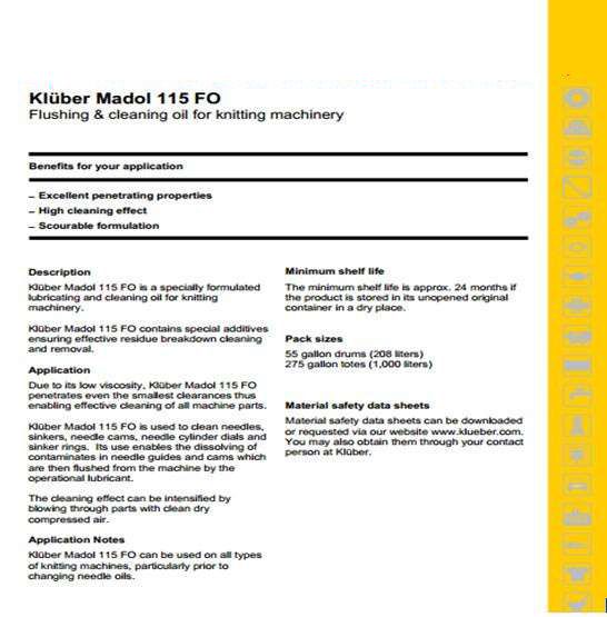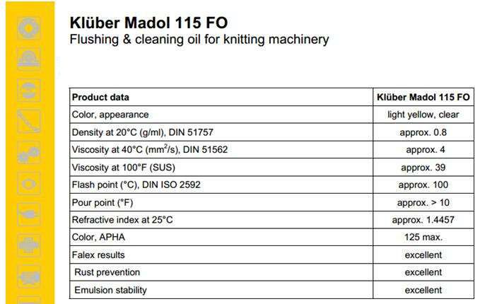 克魯勃Madol 115 FO是一個(gè)卸妝油,針織機(jī)的成圈。