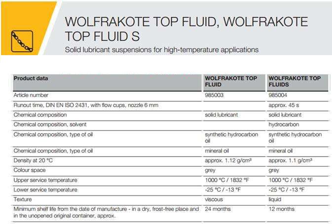 KLUBER WOLFRAKOTE TOP FLUID和KLUBER WOLFRAKOTE TOP FLUID S是