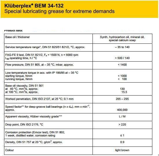 Kluberplex BEM 34-132設計的基礎上的合成烴油,礦物油,和一個特殊的鈣皂。 該產品結構提供了優勢,尤其是對潤滑的滾動軸承,滑動軸承,直線軸承和小齒輪的接觸到了很高的要求。