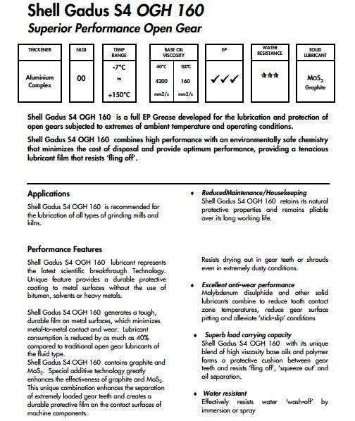 殼牌Gadus S4 OGH 160各類研磨潤滑和米爾斯窯。