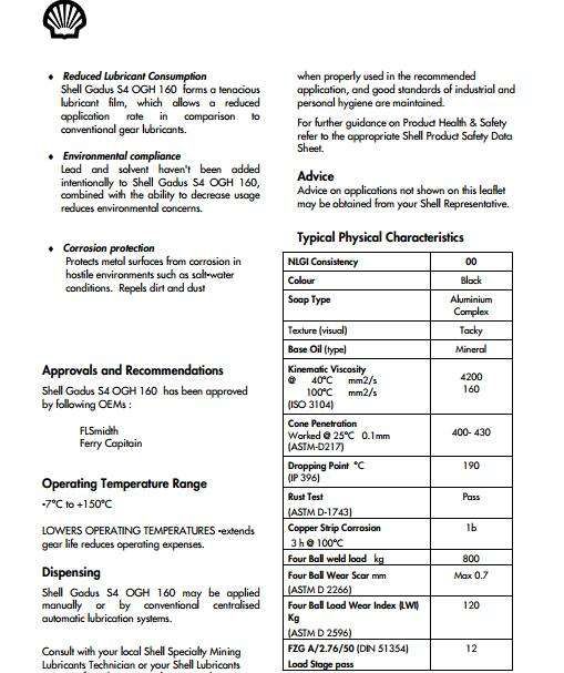 殼牌Gadus S4 OGH 160含有石墨和二硫化鉬。特殊的添加劑技術大大