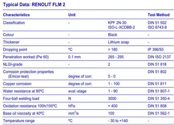 RENOLIT FLM2 基礎(chǔ)上一個(gè)特殊的礦物油并含有固體潤滑劑的包