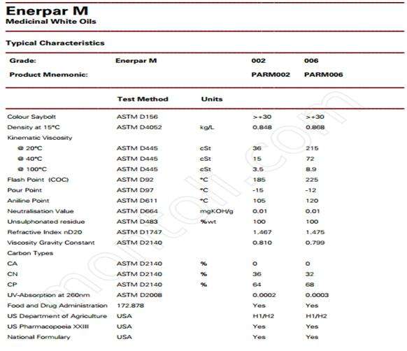 對于油的品種系列技術(shù)白礦油Enerpar T