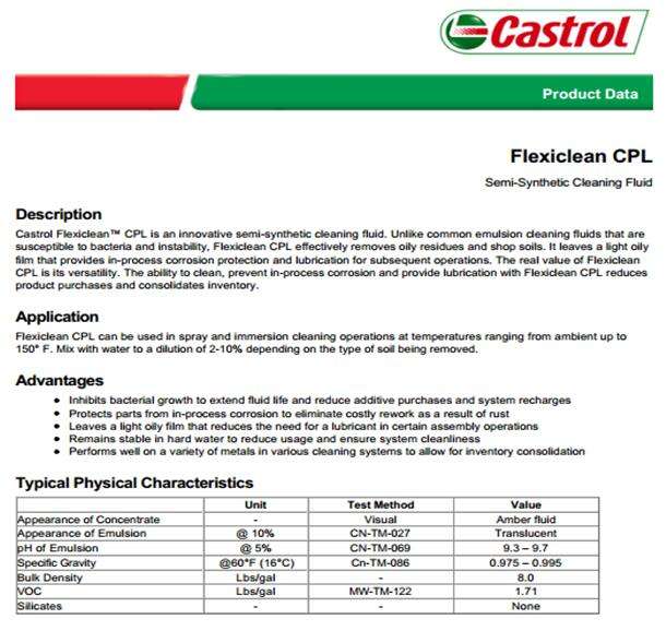 清潔能力,防止腐蝕和潤滑過程中提供了flexiclean CPL