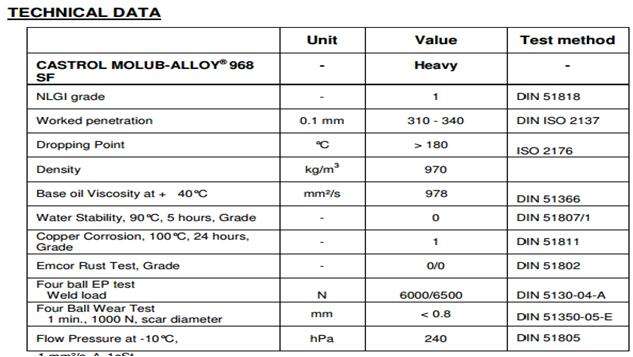 Castrol Molub-alloy968平方英尺的表現也非常好,在水下應用,冷凝,以及