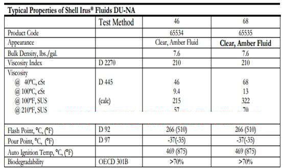 殼牌Irus DU-NA 46和68是全合成酯型液壓油。 它們不含有礦物油,磷酸酯,氯代烴或水。 它們被設計時,經營狀況等,嚴重的體力要求置于流體化學性質穩定。