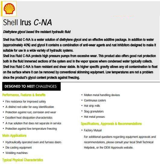 Shell Irus C-NA是一種水溶性乙二醇抗燃液壓油和一包