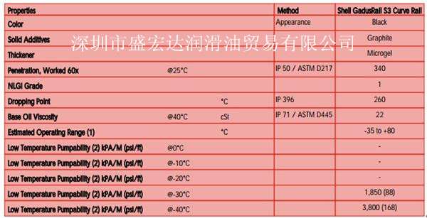 殼牌GadusRail S3曲線鐵路已建成全賽季的表現 - 它已被證明在極端溫度-40到+40°C 發現石墨/殼牌GadusRail S3曲線鐵鉬添加劑,確保減少鋼軌/車輪磨損和免維護潤滑。 殼牌GadusRail S3曲線軌道包含一個有效的石墨EP添加劑建議陡坡無與倫比的承載能力和最大磨損控制所需的高曲率的應用。憑借其極高的熔點,殼牌GadusRail S3曲線軌道提供了非常高的輪轂溫度下的優秀保留。