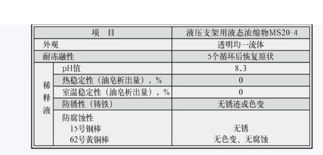 長城牌液壓支架用液態濃縮物M S20-4是滿足液壓支架長壁開采要求的H F A S型難燃液壓液。該產品采用精選的水溶性添加劑和去離子水調配而成。具有卓越的防銹性和長期的使用穩定性。