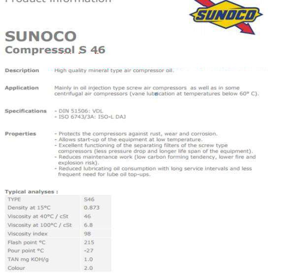 SUNOCO Compressol S46 空壓機油