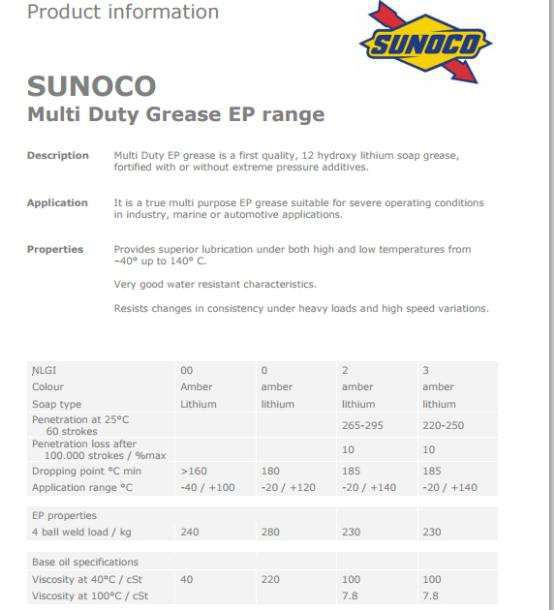 SUNOCO Multi Duty EP 00、EP 0、EP 2、EP 3詳細(xì)說(shuō)明 (瀏覽2385次)