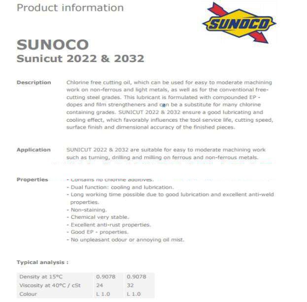 SUNOCO SUNICUT 2022、2032詳細(xì)說(shuō)明 (瀏覽2973次)