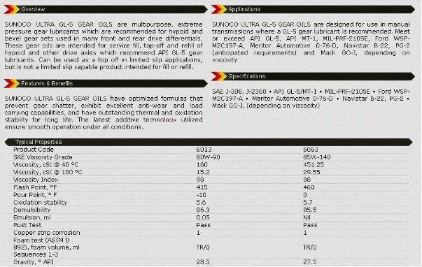 SUNOCO ULTRA GL-5 GEAR OIL 80W-90 、85W-140詳細說明 (瀏覽2703次)