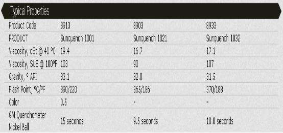 SUNOCO SUNQUENCH OILS 1001推薦用于常規淬火的臨界冷卻速率和低浴溫度高達190°F.