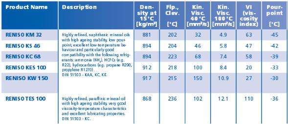 RENISO KM 32,KS 46,KC 68建議使用氨(漢)與結束——(例如R22)和碳氫制冷劑(如丙烷、丙烯、異丁烷)開放、半封閉式和密封的壓縮機。