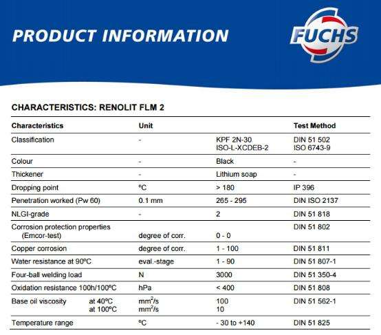 包括提供良好的二硫化鉬緊急運行性能。RENOLIT FLM 0溫度:-30℃+120℃、RENOLIT FLM 2溫度:-30℃+140℃