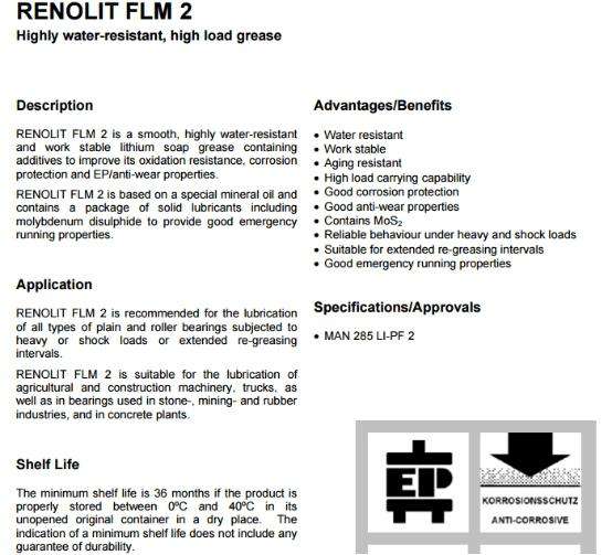 RENOLIT FLM是平穩,高水耐和工作穩定的鋰皂基潤滑脂