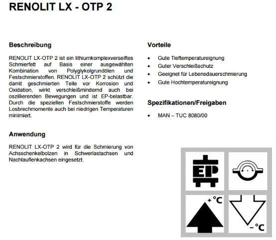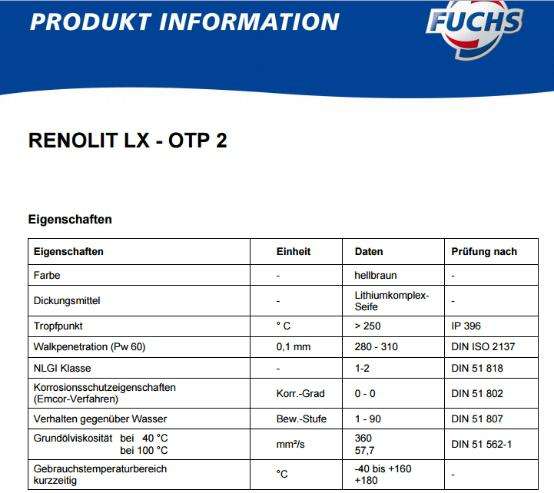 和極壓(EP)可裝載。 RENOLIT LX-OTP 2包含一個特殊的固定端口