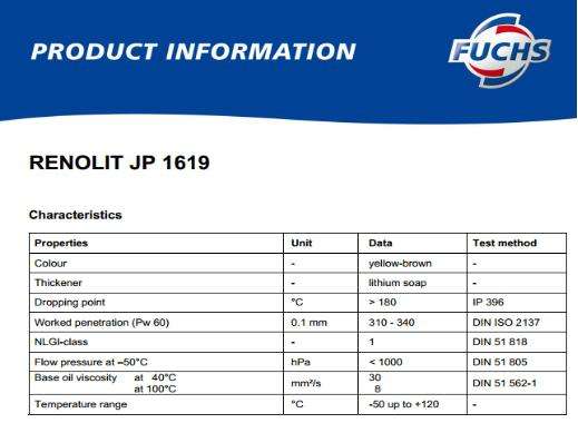 RENOLITJP1619建議時,它需要良好的潤滑性和最小的阻力,即使在低溫啟動時,機器的潤滑。