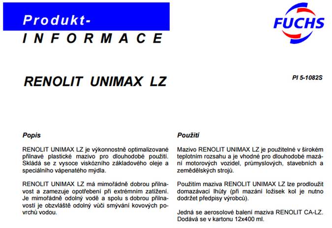 應用:RENOLIT UNIMAX LZ很寬的溫度范圍內,是非常適合的機動車輛,以及農業,建筑和土方機械潤滑持久。
