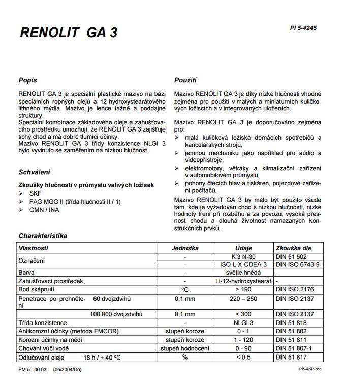 renolit GA 3的潤滑油是通過適當的低噪聲