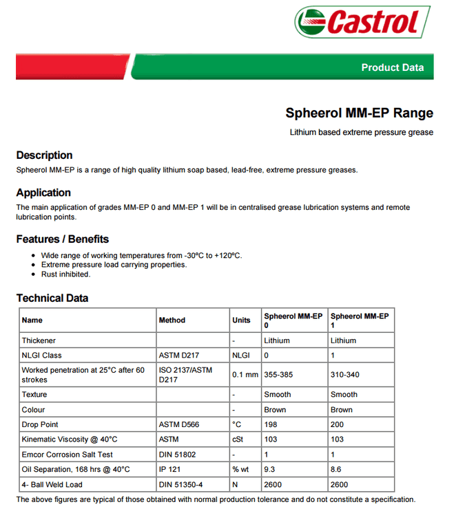 CASTROL Spheerol MM-EP 0、MM-EP 1詳細說明 (瀏覽2462次)