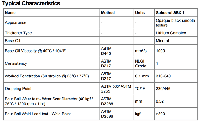 spheerol SBX grease1是一個獨(dú)特的極壓添加劑混合,固體潤滑劑和一種有效的腐蝕