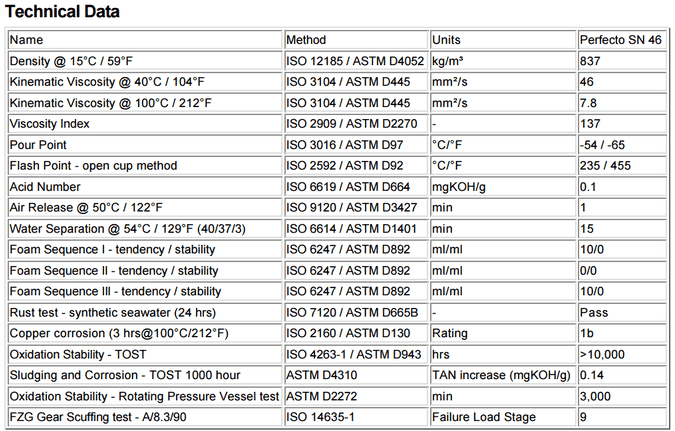 Perfecto SN 46具有非常高的程度的熱穩定性相結合,確保潤滑和氧化