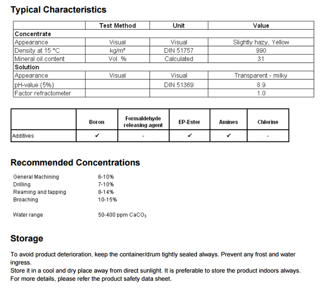 優良的潤濕性能減少冷卻劑拖出并提供清潔的機床和部件