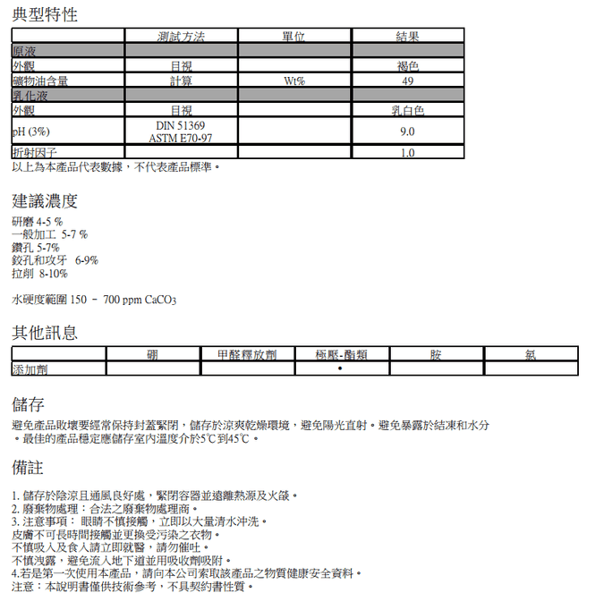 * 不含氯和亞硝酸鹽,可以滿足您地方立法的廢物處理和環保要求。