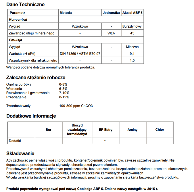 castrol alusol ABF(原名castrol 5 5 cooledge ABF)建立高效的半合成的乳液