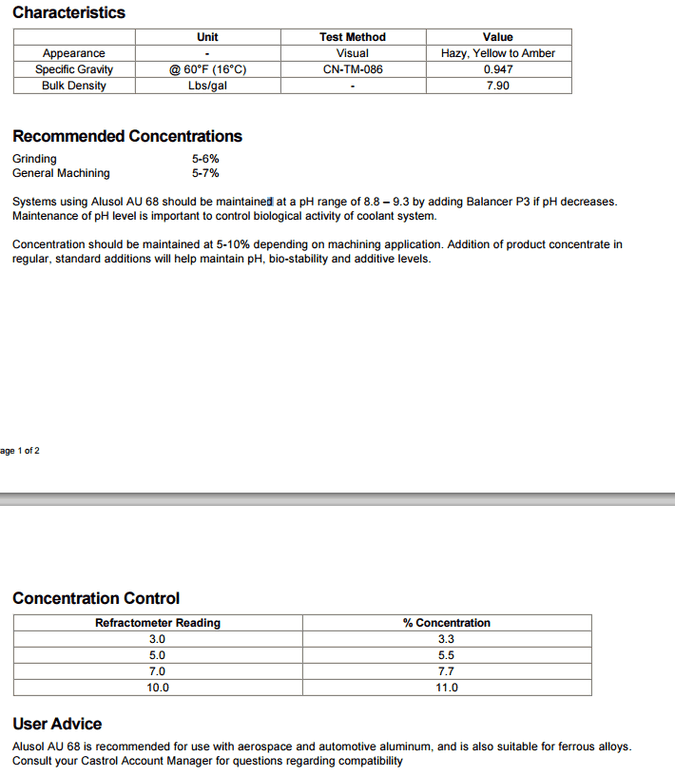 Alusol AU 68的設計符合嚴格的安全要求,金屬加工液。
