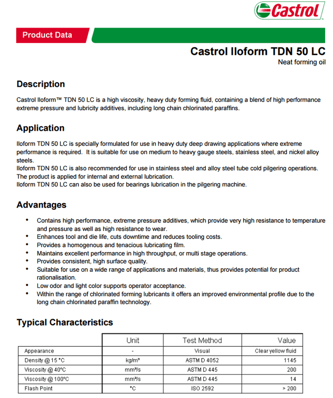 iloform TDN 50 LC也推薦使用不銹鋼和合金鋼管冷軋作業(yè)。