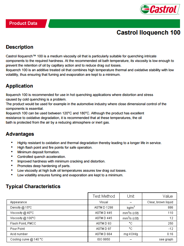 嘉實(shí)多iloquench 100是一種中等粘度油,特別適用于淬火油