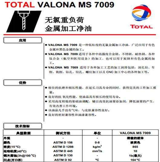 道達(dá)爾VALONA MS 7009無(wú)氯重負(fù)荷金屬加工凈油